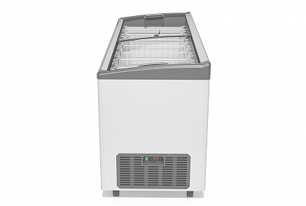 Объем морозильной камеры 520 литров, в комплекте с ларем поставляются 6 корзин для рациональной выкладки небольших товаров.