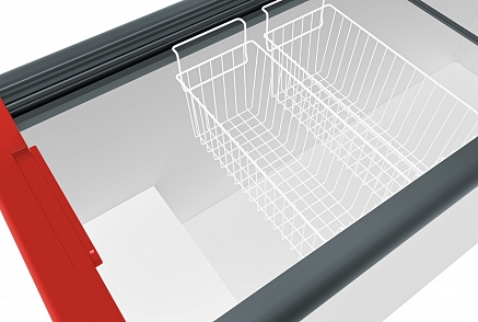 Объем ларя – 590 литров, что позволяет хранить любые продукты, в том числе, большие полуфабрикаты, замороженную рыбу и мясо. Ларь снабжен колесиками и замками для удобного и безопасного использования на торговой точке любого вида. В комплекте поставляется 7 корзин.